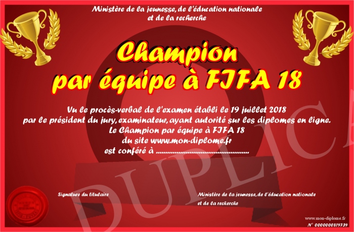Envoyez par email votre Champion par équipe à FIFA 18 personalisé