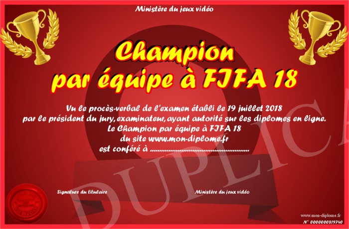Envoyez par email votre Champion par équipe à FIFA 18 personalisé