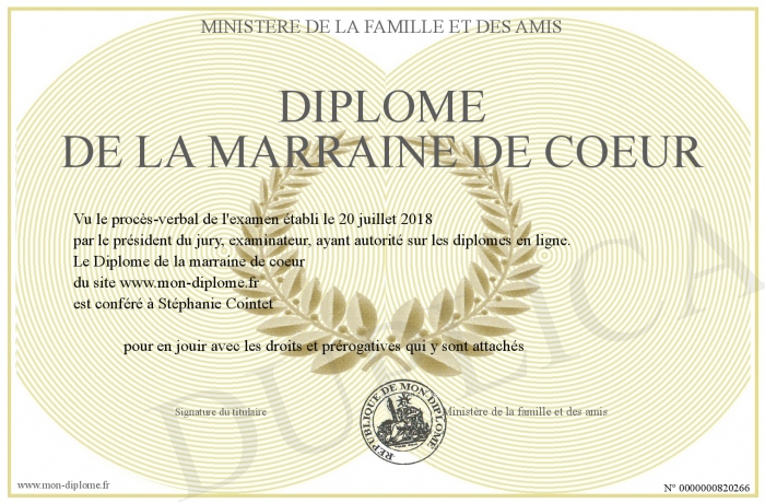 Envoyez par email votre Diplôme de la marraine de coeur personalisé