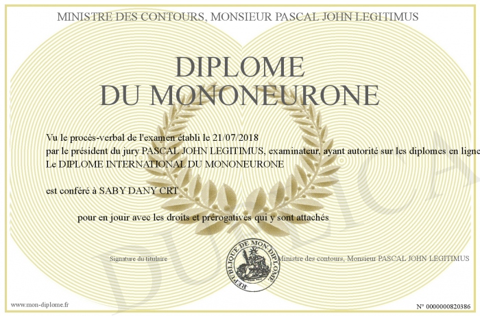 Envoyez par email votre Diplôme du MONONEURONE personalisé