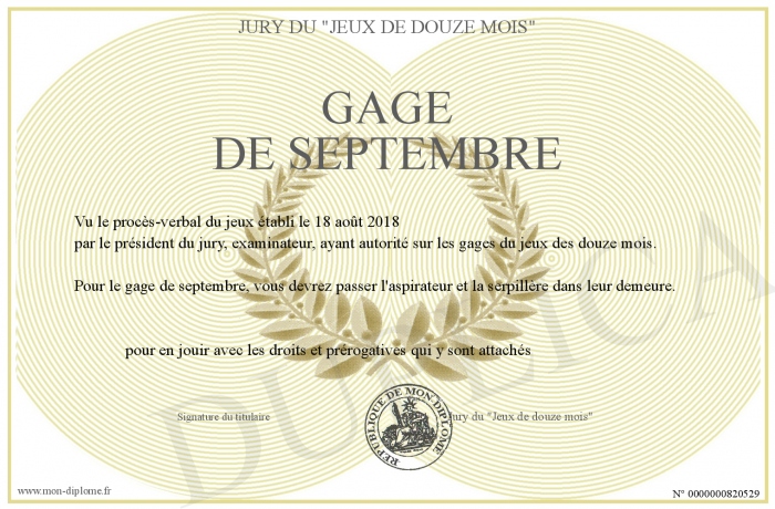 Envoyez par email votre gage de septembre personalisé