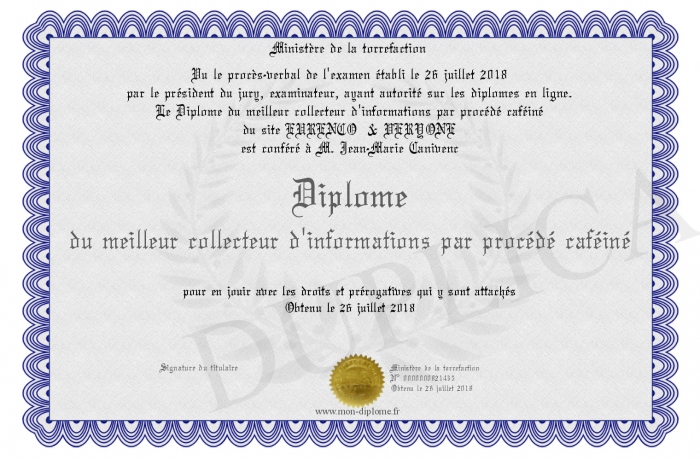Envoyez par email votre Diplôme du meilleur collecteur d'informations par procédé caféiné personalisé