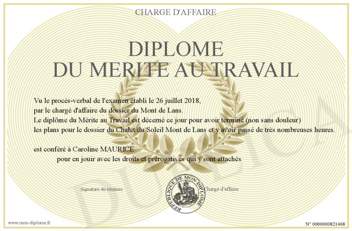 Envoyez par email votre Diplôme du Mérite au Travail personalisé