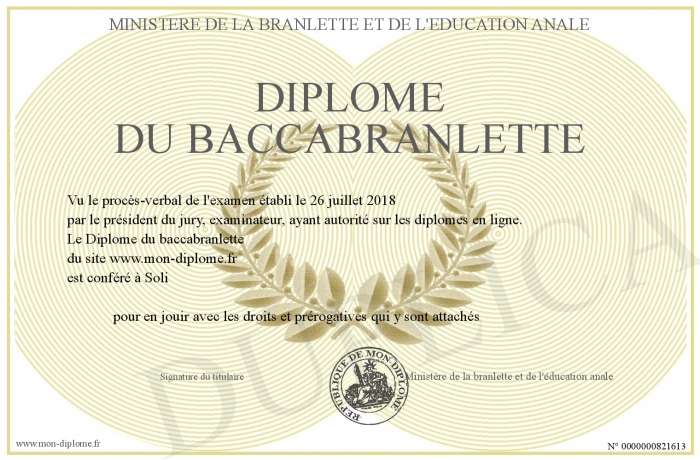Envoyez par email votre Diplôme du baccabranlette personalisé