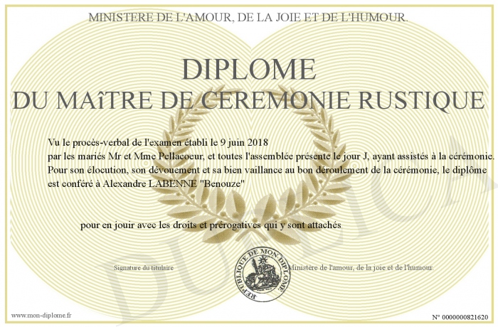 • Diplôme du Maître de cérémonie rustique