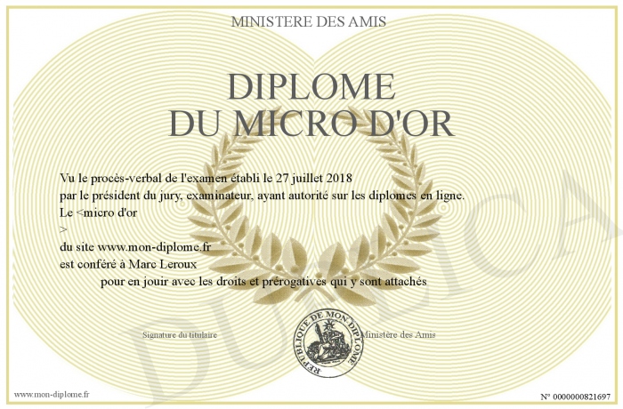Envoyez par email votre Diplôme du micro d'or personalisé