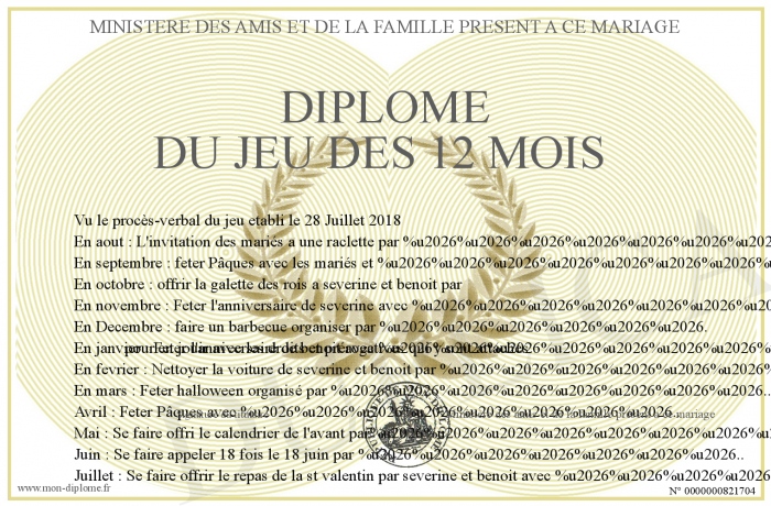 Envoyez par email votre diplome du jeu des 12 mois personalisé