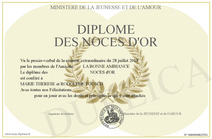 Envoyez par email votre Diplôme des NOCES D'OR personalisé