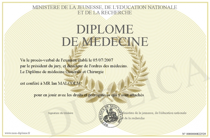 Envoyez par email votre Diplôme de MEDECINE personalisé