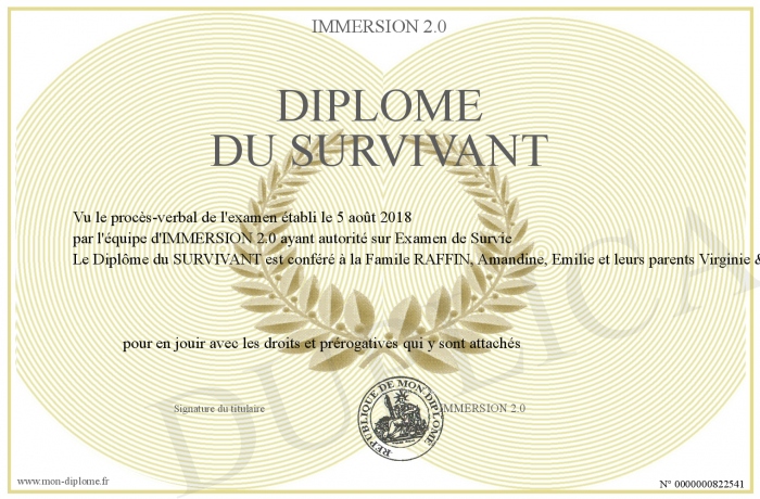 Envoyez par email votre Diplôme du SURVIVANT personalisé