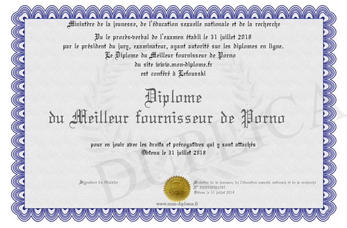 Envoyez par email votre Diplôme du Meilleur fournisseur de Porno personalisé
