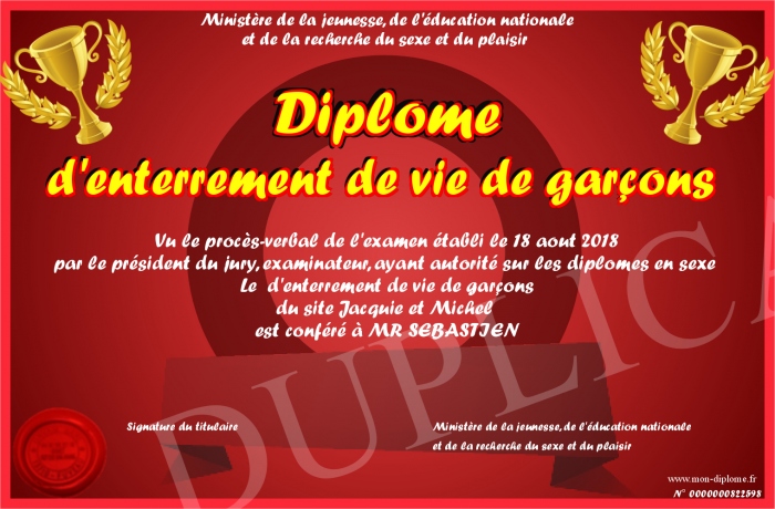 Envoyez par email votre Diplôme d'enterrement de vie de garçons personalisé