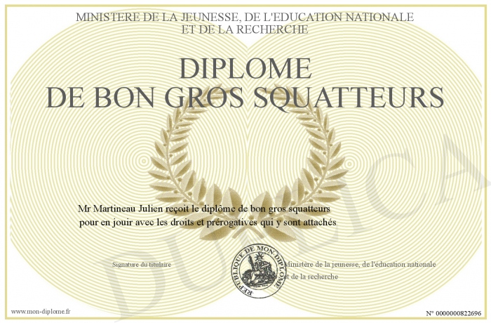 Envoyez par email votre diplôme de bon gros squatteurs personalisé