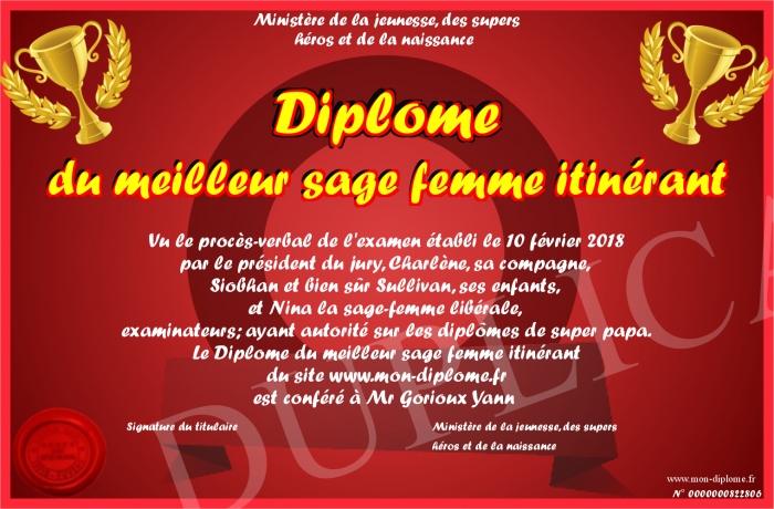 Envoyez par email votre Diplôme du meilleur sage femme itinérant personalisé