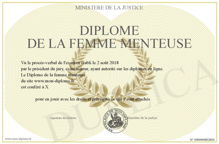 Envoyez par email votre Diplôme de la femme menteuse personalisé