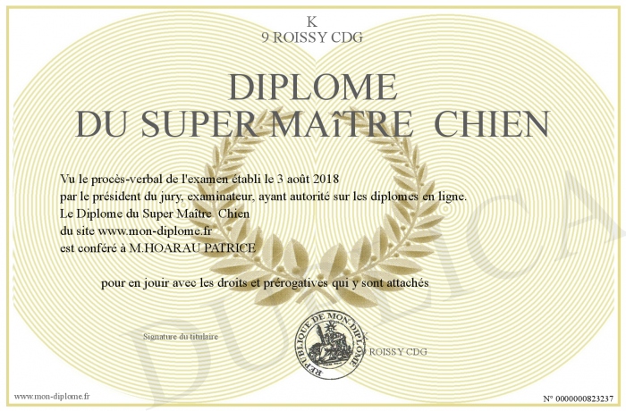 Envoyez par email votre Diplôme du Super Maître Chien personalisé