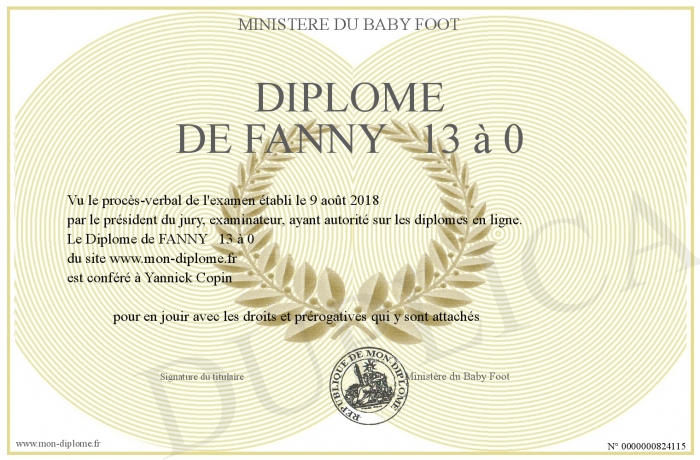 Envoyez par email votre Diplôme de FANNY 13 à 0 personalisé
