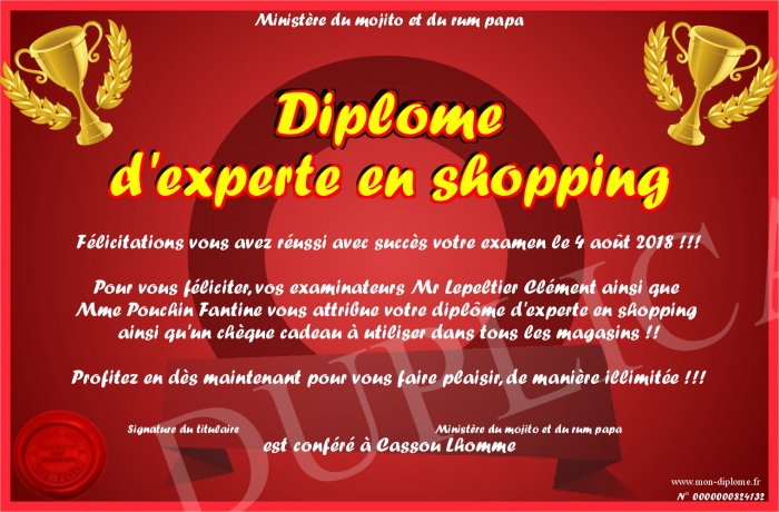 Envoyez par email votre Diplôme d'experte en shopping personalisé