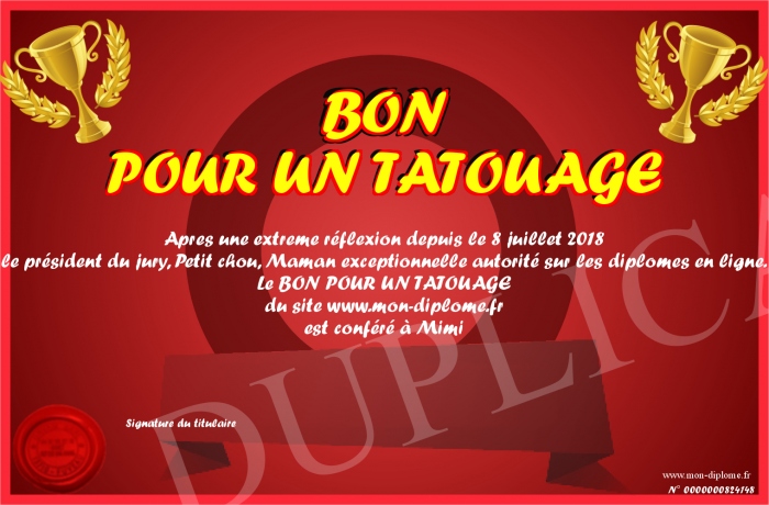 Envoyez par email votre BON POUR UN TATOUAGE personalisé