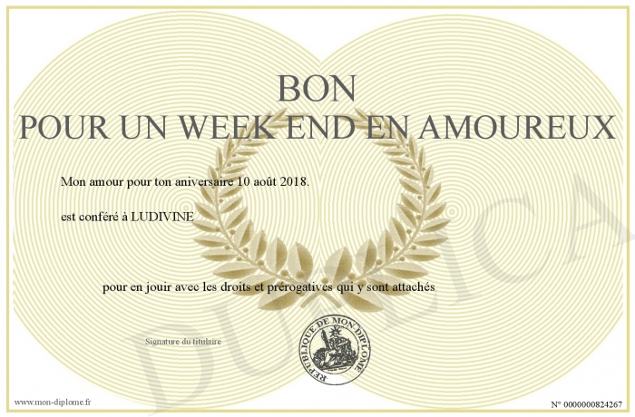 Envoyez par email votre bon pour un week end en amoureux personalisé
