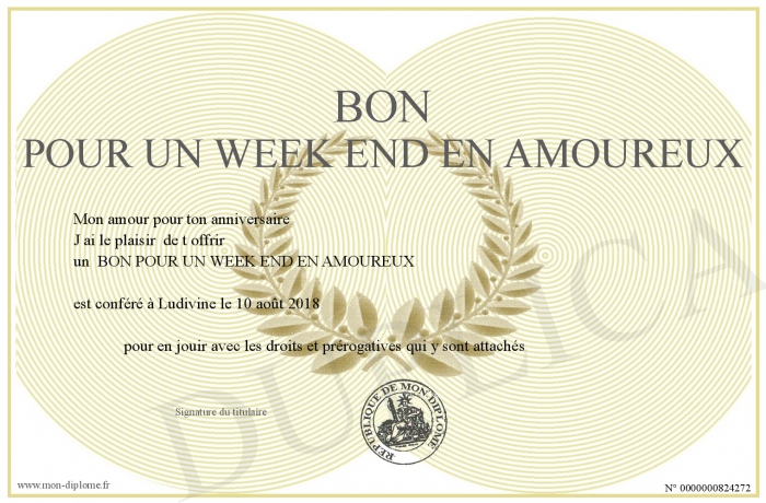 Envoyez par email votre BON POUR UN WEEK END EN AMOUREUX personalisé