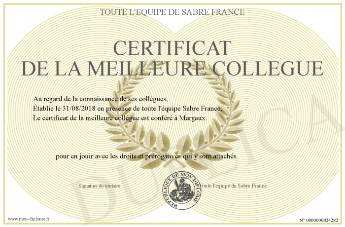 Envoyez par email votre Certificat de la meilleure collègue personalisé