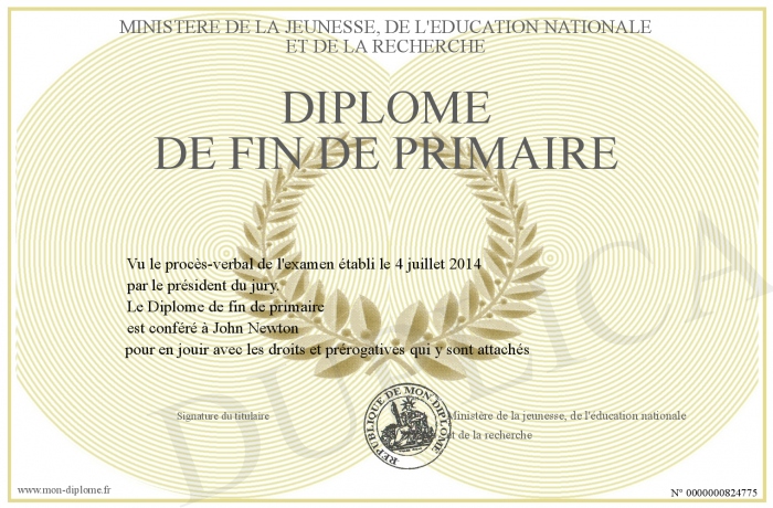 Envoyez par email votre Diplôme de fin de primaire personalisé