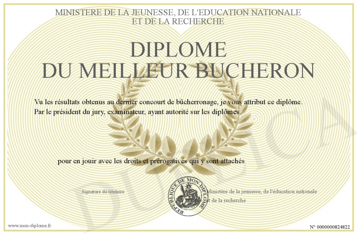 Envoyez par email votre Diplôme du meilleur bucheron personalisé
