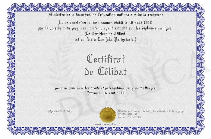 Envoyez par email votre Certificat de Célibat personalisé