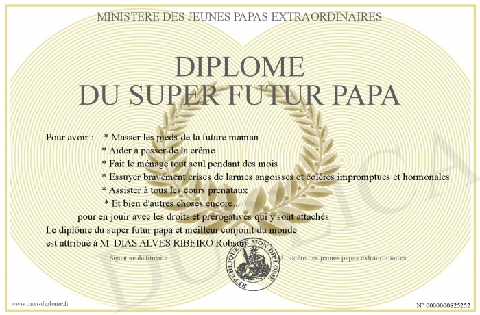 Envoyez par email votre Diplôme du SUPER FUTUR PAPA personalisé