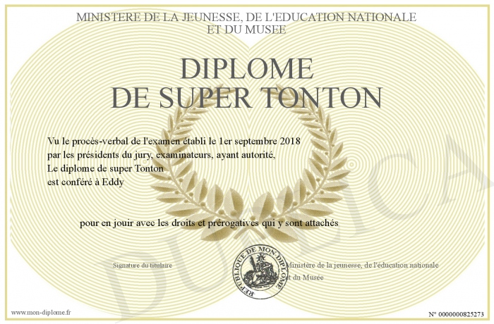 Envoyez par email votre diplôme de super Tonton personalisé