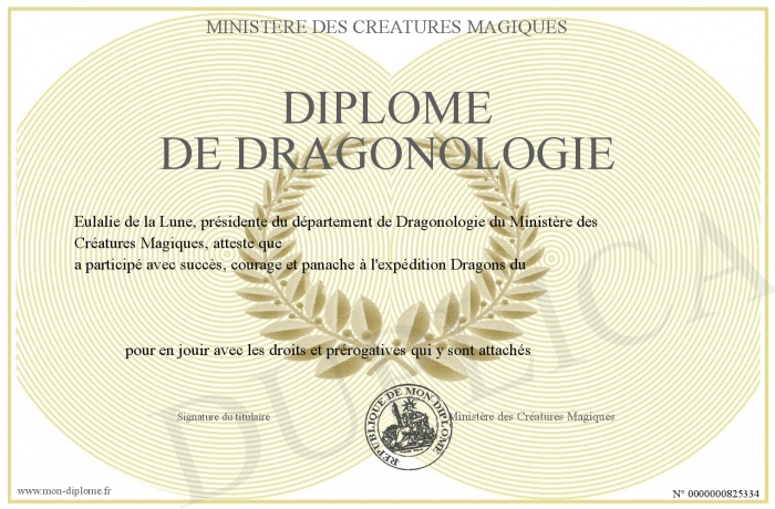 Envoyez par email votre Diplôme de Dragonologie personalisé