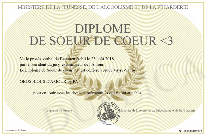 Envoyez par email votre Diplôme de Soeur de coeur -3 personalisé