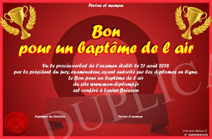 Envoyez par email votre Bon pour un baptême de l air personalisé