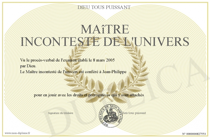 Envoyez par email votre Maître incontesté de l'univers personalisé