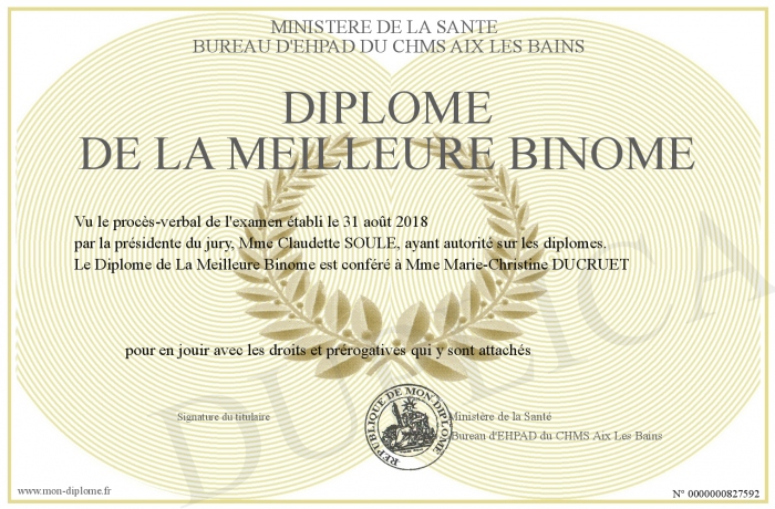 Envoyez par email votre Diplôme de La Meilleure Binôme personalisé