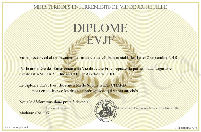 envoyé par le Ministère des Enterrements de Vie de Jeune Fille !