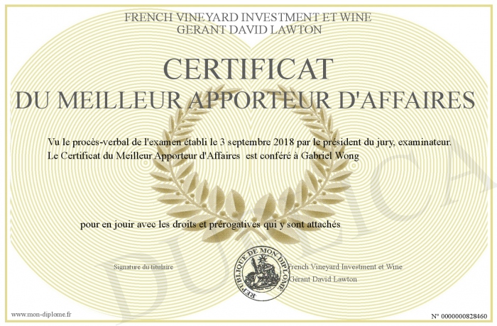 Envoyez par email votre Certificat du Meilleur Apporteur d'Affaires personalisé