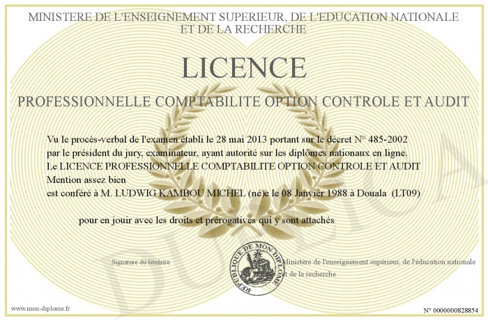 Envoyez par email votre LICENCE PROFESSIONNELLE COMPTABILITE OPTION CONTROLE ET AUDIT personalisé