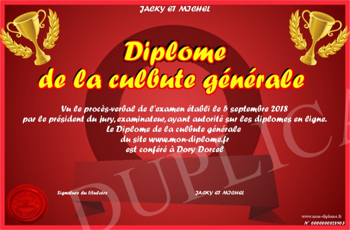 Envoyez par email votre Diplôme de la culbute générale personalisé