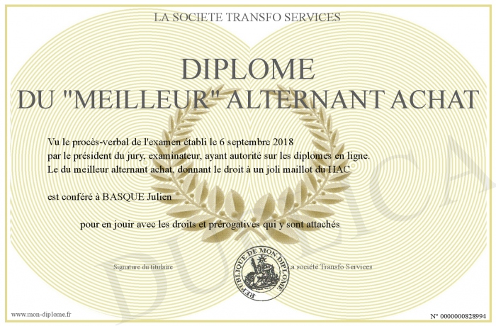 Envoyez par email votre Diplôme du -meilleur- alternant achat personalisé