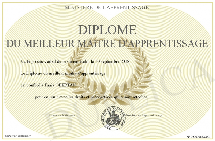 Envoyez par email votre Diplôme du meilleur maître d'apprentissage personalisé