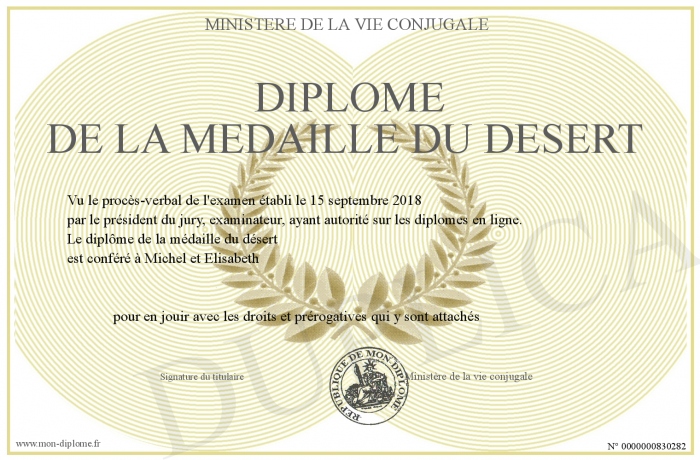 Envoyez par email votre Diplôme de la médaille du désert personalisé
