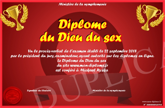 Envoyez par email votre Diplôme du Dieu du sex personalisé