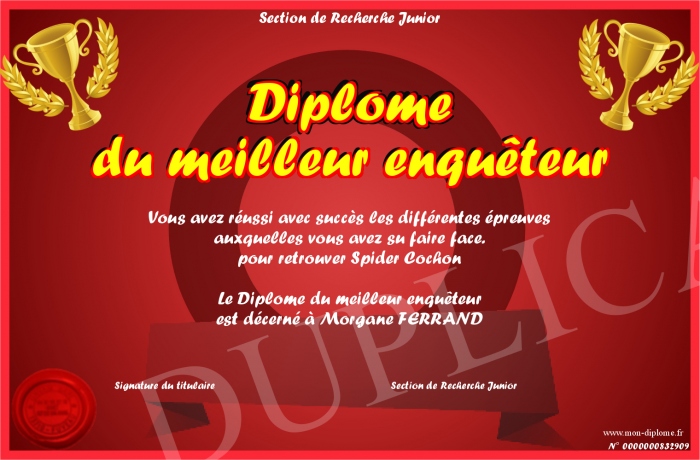 Envoyez par email votre Diplôme du meilleur enquêteur personalisé