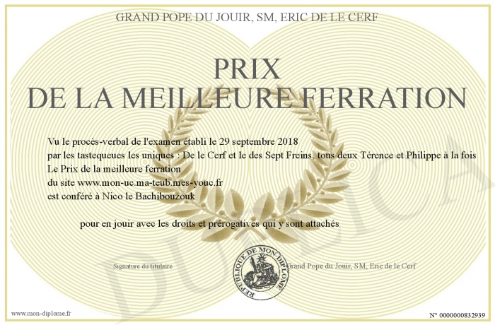 Envoyez par email votre Prix de la meilleure ferration personalisé