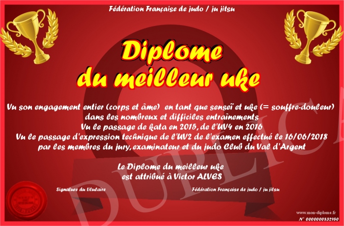 Envoyez par email votre Diplôme du meilleur uke personalisé