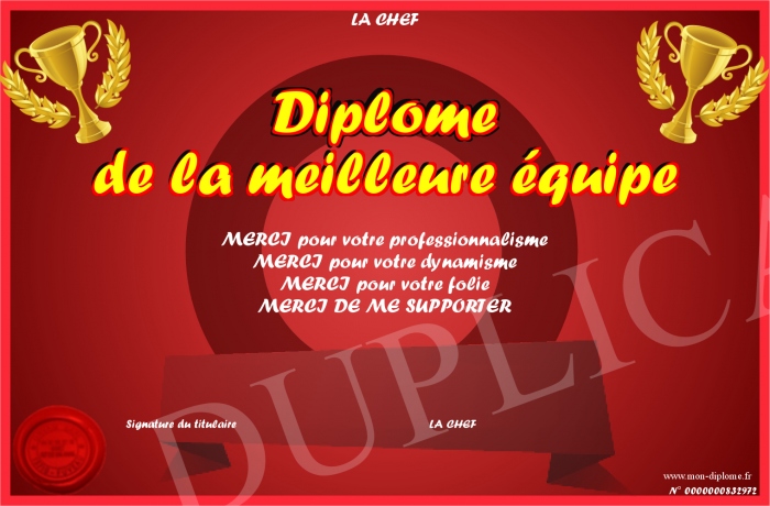 Envoyez par email votre Diplôme de la meilleure équipe personalisé