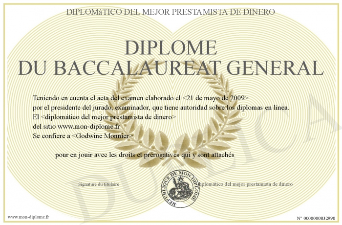 Envoyez par email votre Diplôme du baccalaureat général personalisé