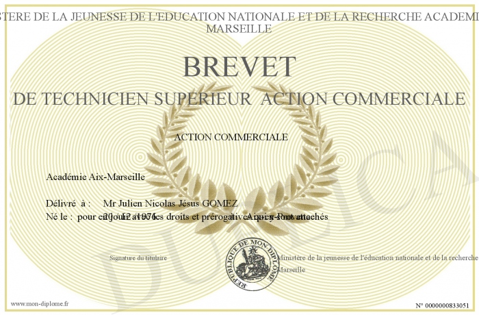 Envoyez par email votre Brevet de Technicien Supérieur action commerciale personalisé